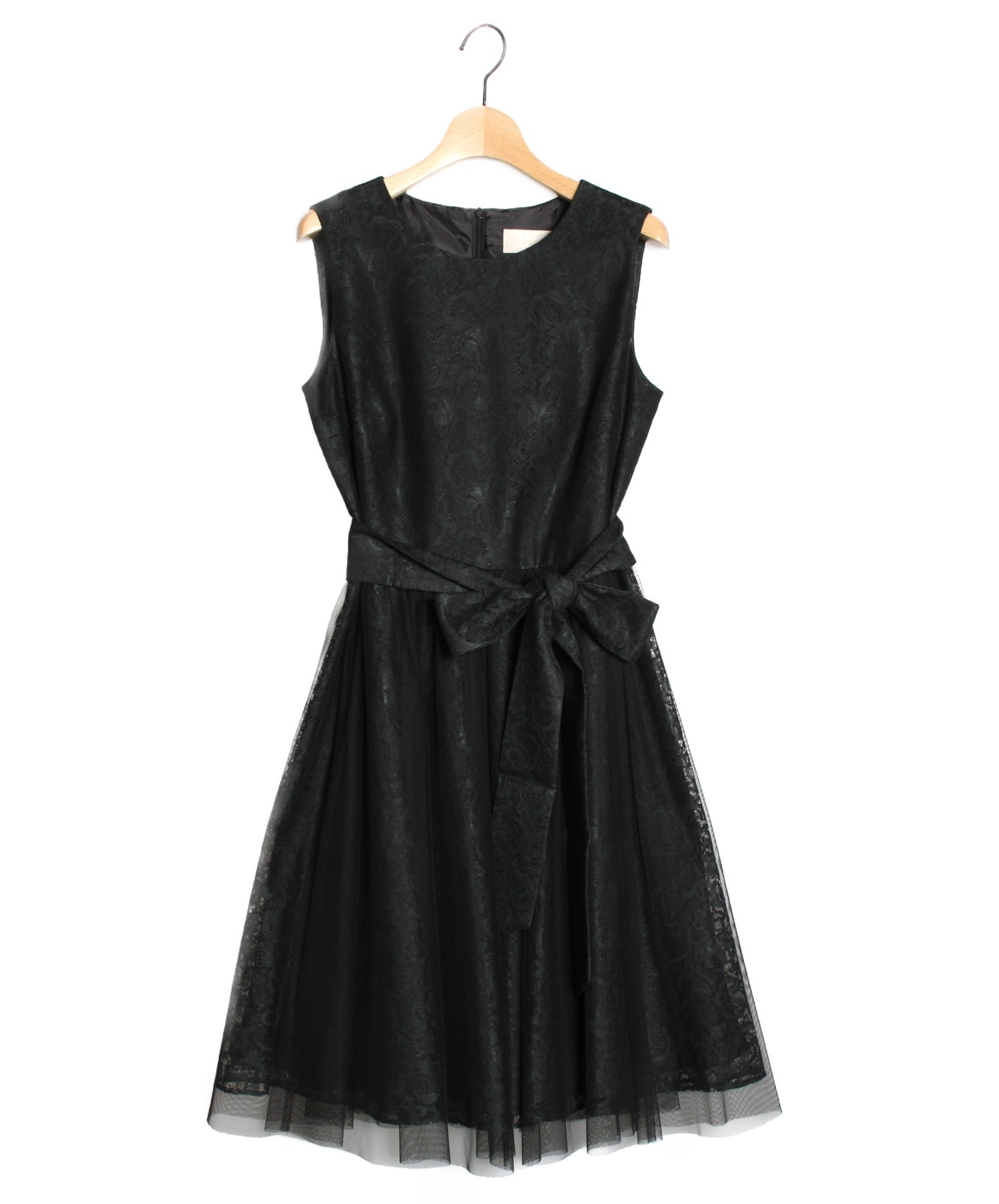 カエン Kaene 総 レース Aライン ノースリーブ ワンピース 黒 中古
